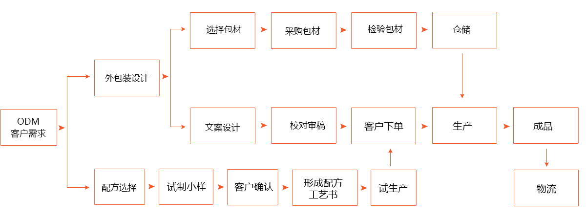 原材料到齐,即通知生产安排中试,取样检测,中试和配料后按法规规定的5个工作日检测周期安排取样检测,N/O报告告知客户。客供包材验收后市场售中与客户核实签样,部分工艺要求与客户共同试验商定,同时回签。